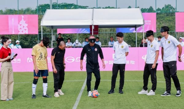 广州足球名宿温志军携手多名现役球员体验盲人足球,共话足球情怀