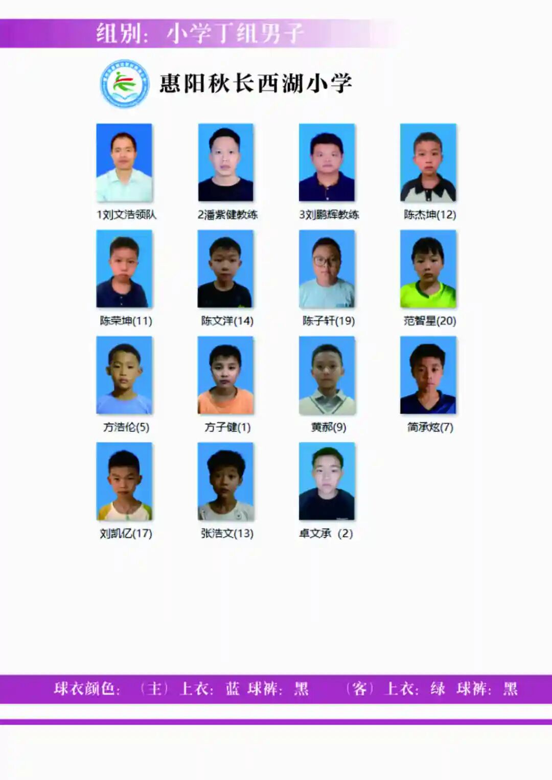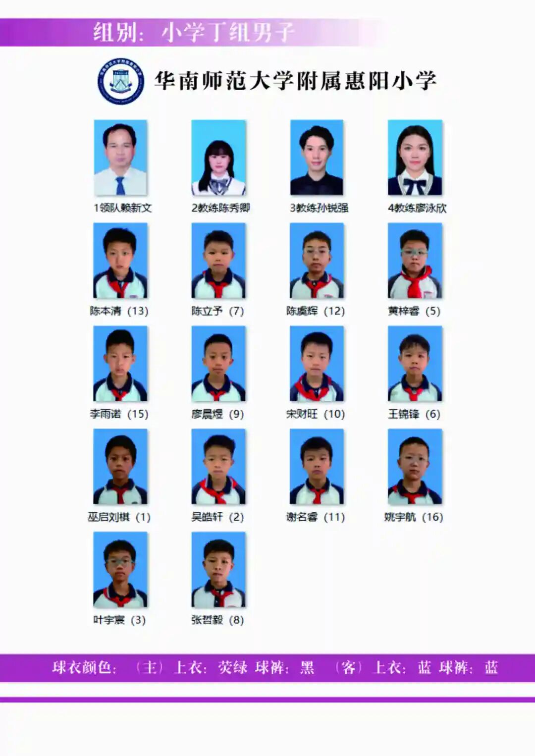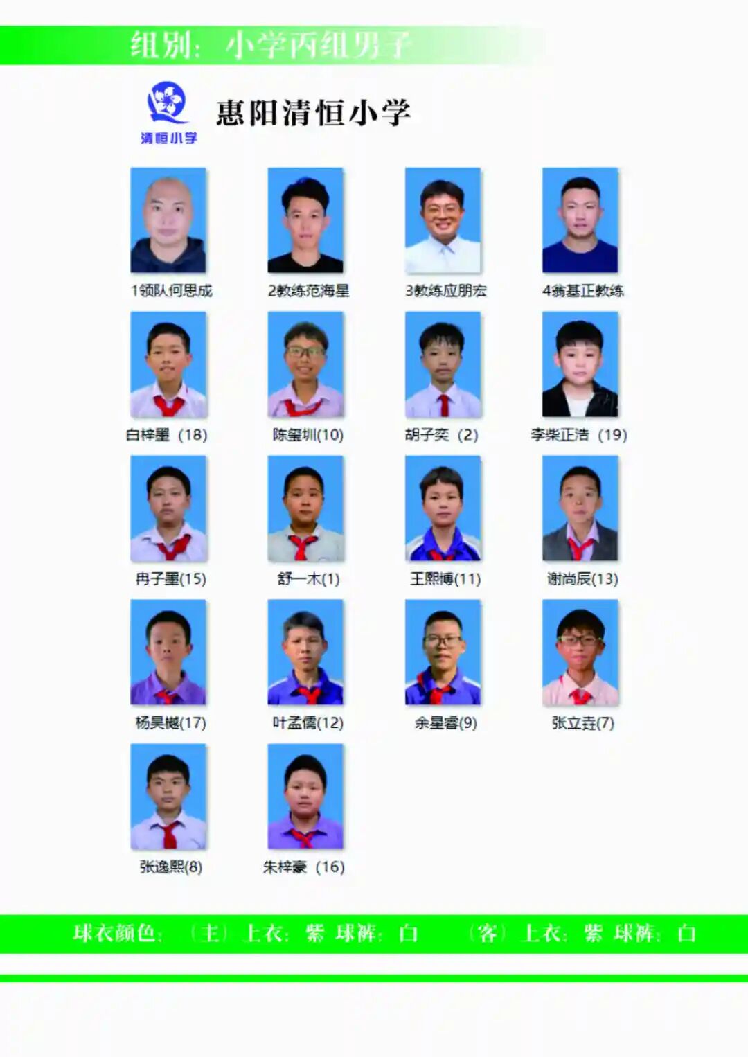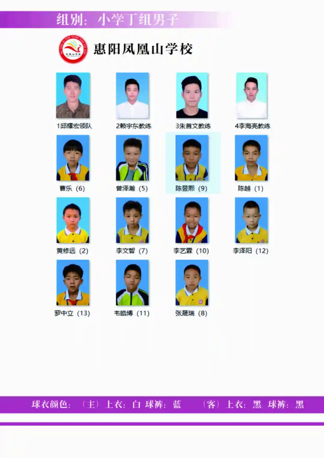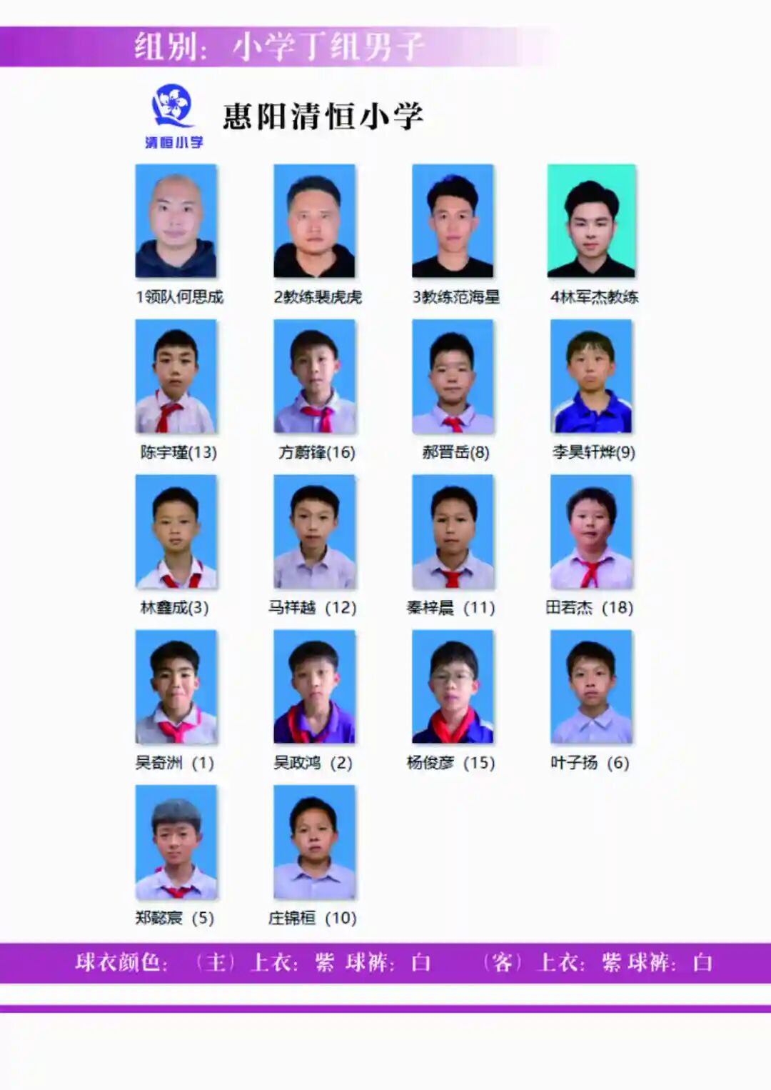 赛事简介:惠阳“区长杯”青少年足球锦标赛简称惠阳“区长杯”足球赛,是由惠阳区文化广电旅游体育局、惠阳区教育局主办,惠阳区足球协会承办的全区中小学一年一度的校园足球赛事。参赛单位来自区各中学、各中心小学、直属学校等,是惠阳目前青少年足球覆盖范围最广、规格最高的足球锦标赛事。赛事完美对接了惠州市“市长杯”、广东省“省长杯”校园足球赛。2016年的第一届举办至今,“区长杯”赛事已经走过了10年的历程,队伍数量也从最初的19支增加到101支,“千里之行始于足下”,每一届参赛人数的增长、赛事规模的扩大,都印证了这些年惠阳青少年足球的稳固发展,这些成果离不开上级领导部门的重视和指导。也都离不开社会各界人士对惠阳青少年足球的关注和支持。 为确保本届赛事顺利举行,赛前召开了领队教练员赛前联席会议、裁判员培训会议,会议结束后各组别进行了抽签分组。 左右滑动查看 左右滑动查看其余队伍(共18支队伍)