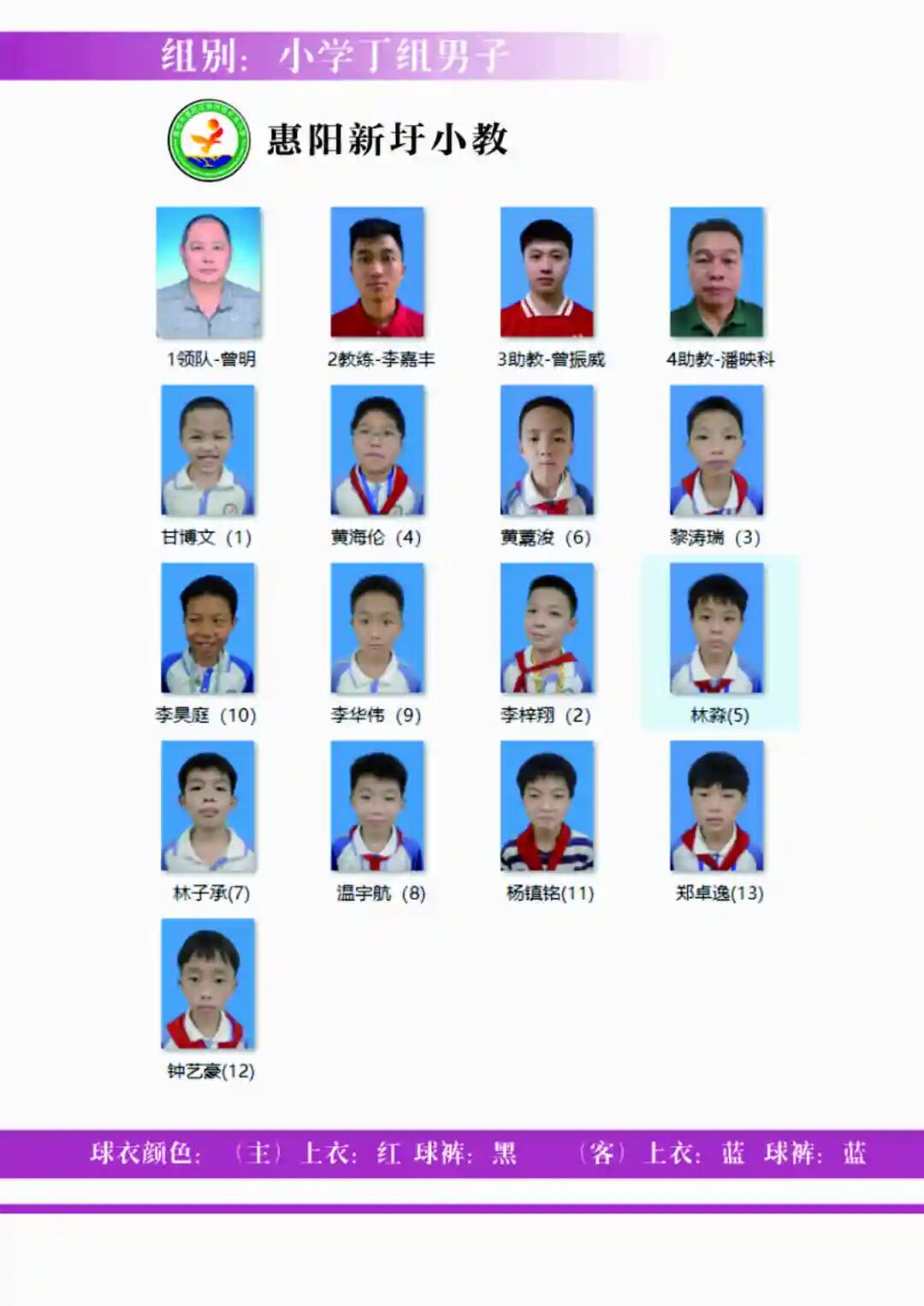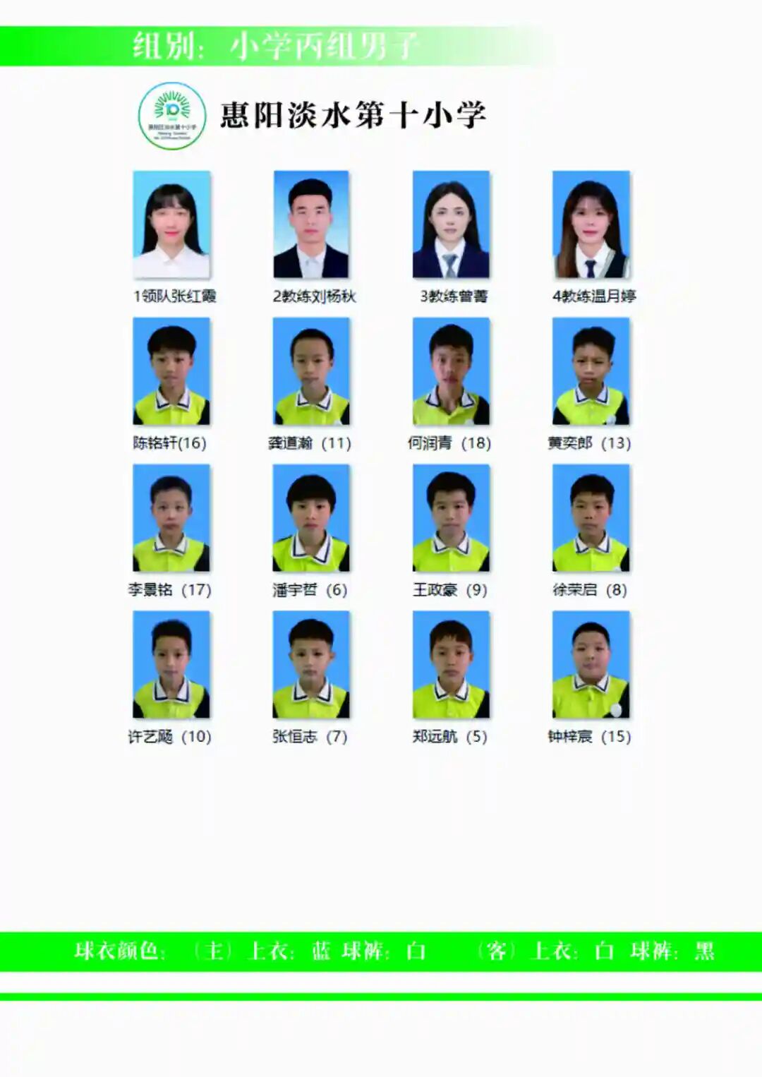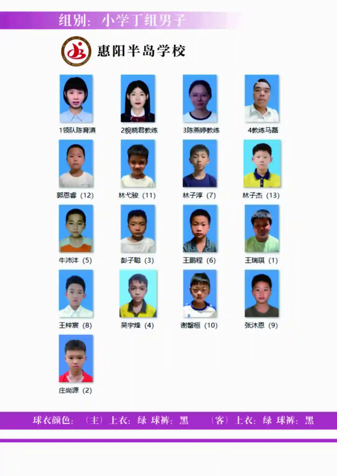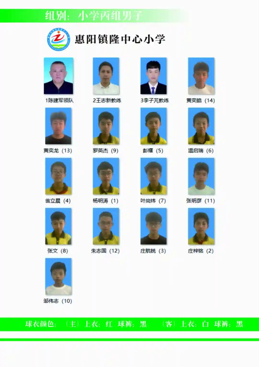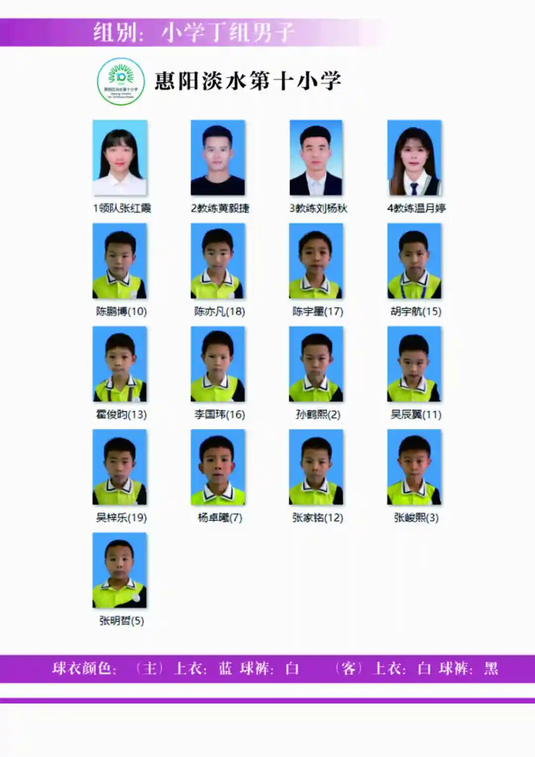 赛事简介:惠阳“区长杯”青少年足球锦标赛简称惠阳“区长杯”足球赛,是由惠阳区文化广电旅游体育局、惠阳区教育局主办,惠阳区足球协会承办的全区中小学一年一度的校园足球赛事。参赛单位来自区各中学、各中心小学、直属学校等,是惠阳目前青少年足球覆盖范围最广、规格最高的足球锦标赛事。赛事完美对接了惠州市“市长杯”、广东省“省长杯”校园足球赛。2016年的第一届举办至今,“区长杯”赛事已经走过了10年的历程,队伍数量也从最初的19支增加到101支,“千里之行始于足下”,每一届参赛人数的增长、赛事规模的扩大,都印证了这些年惠阳青少年足球的稳固发展,这些成果离不开上级领导部门的重视和指导。也都离不开社会各界人士对惠阳青少年足球的关注和支持。 为确保本届赛事顺利举行,赛前召开了领队教练员赛前联席会议、裁判员培训会议,会议结束后各组别进行了抽签分组。 左右滑动查看 左右滑动查看其余队伍(共18支队伍)