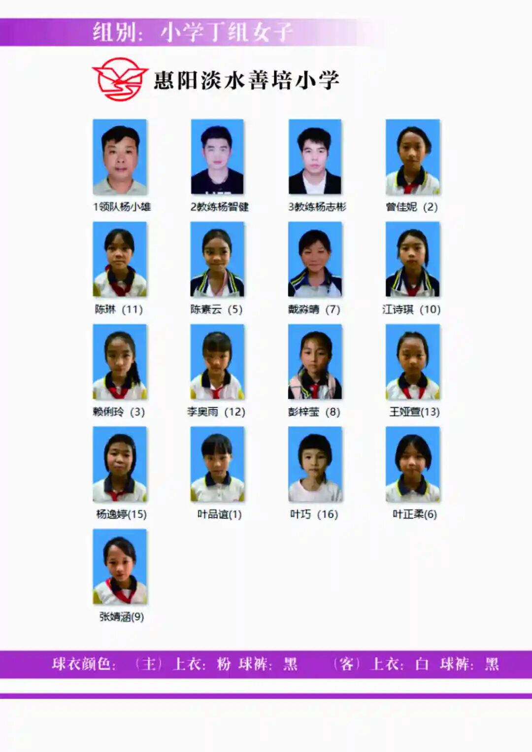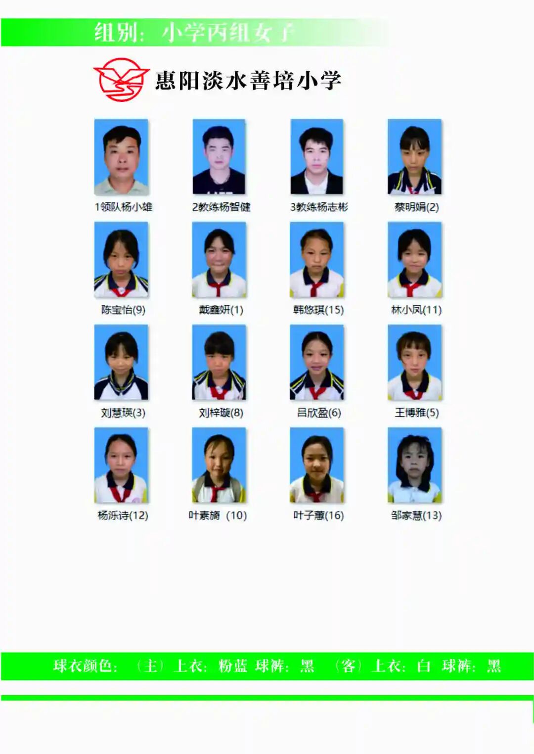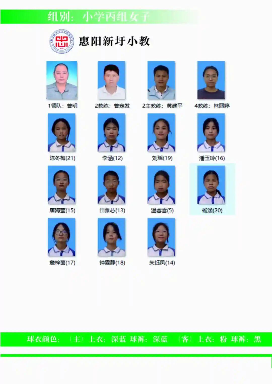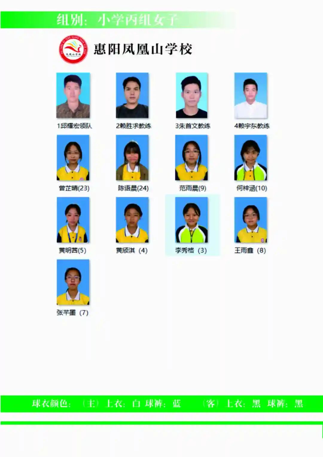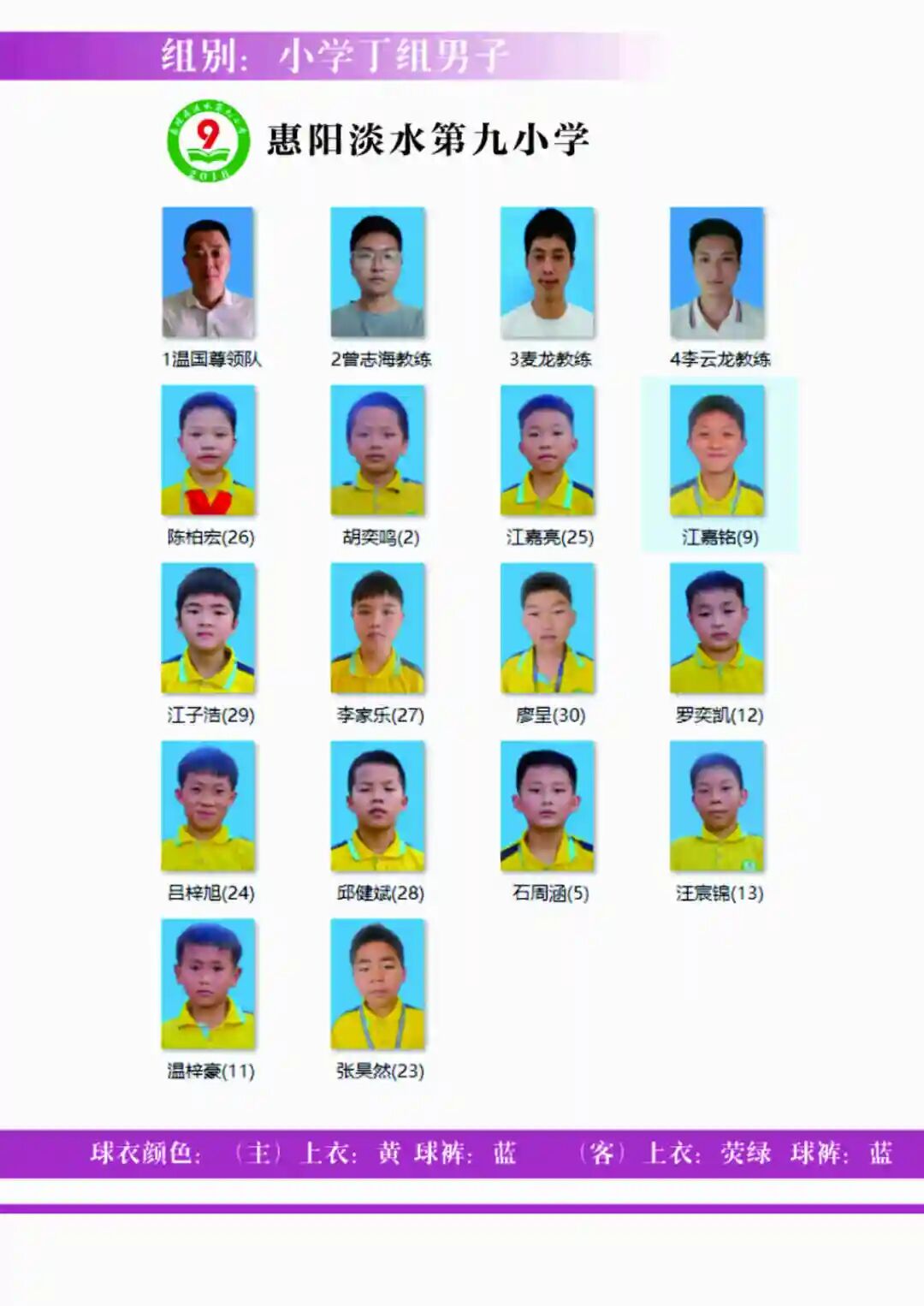 赛事简介:惠阳“区长杯”青少年足球锦标赛简称惠阳“区长杯”足球赛,是由惠阳区文化广电旅游体育局、惠阳区教育局主办,惠阳区足球协会承办的全区中小学一年一度的校园足球赛事。参赛单位来自区各中学、各中心小学、直属学校等,是惠阳目前青少年足球覆盖范围最广、规格最高的足球锦标赛事。赛事完美对接了惠州市“市长杯”、广东省“省长杯”校园足球赛。2016年的第一届举办至今,“区长杯”赛事已经走过了10年的历程,队伍数量也从最初的19支增加到101支,“千里之行始于足下”,每一届参赛人数的增长、赛事规模的扩大,都印证了这些年惠阳青少年足球的稳固发展,这些成果离不开上级领导部门的重视和指导。也都离不开社会各界人士对惠阳青少年足球的关注和支持。 为确保本届赛事顺利举行,赛前召开了领队教练员赛前联席会议、裁判员培训会议,会议结束后各组别进行了抽签分组。 左右滑动查看 左右滑动查看其余队伍(共18支队伍)