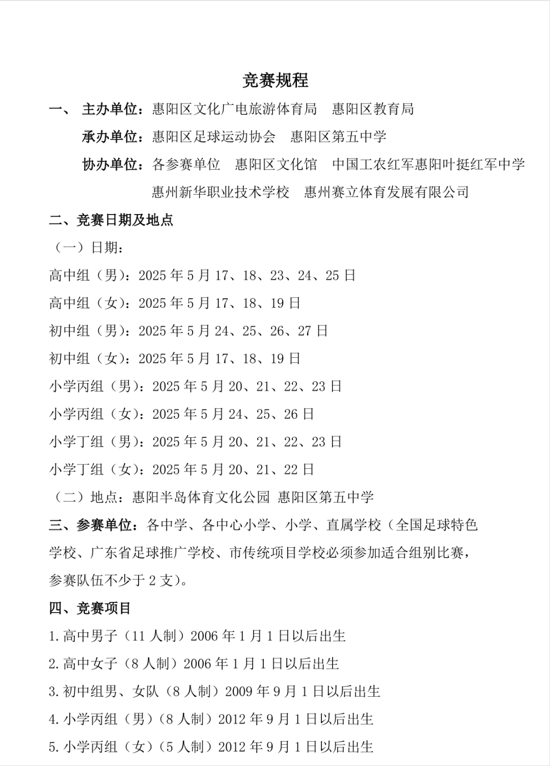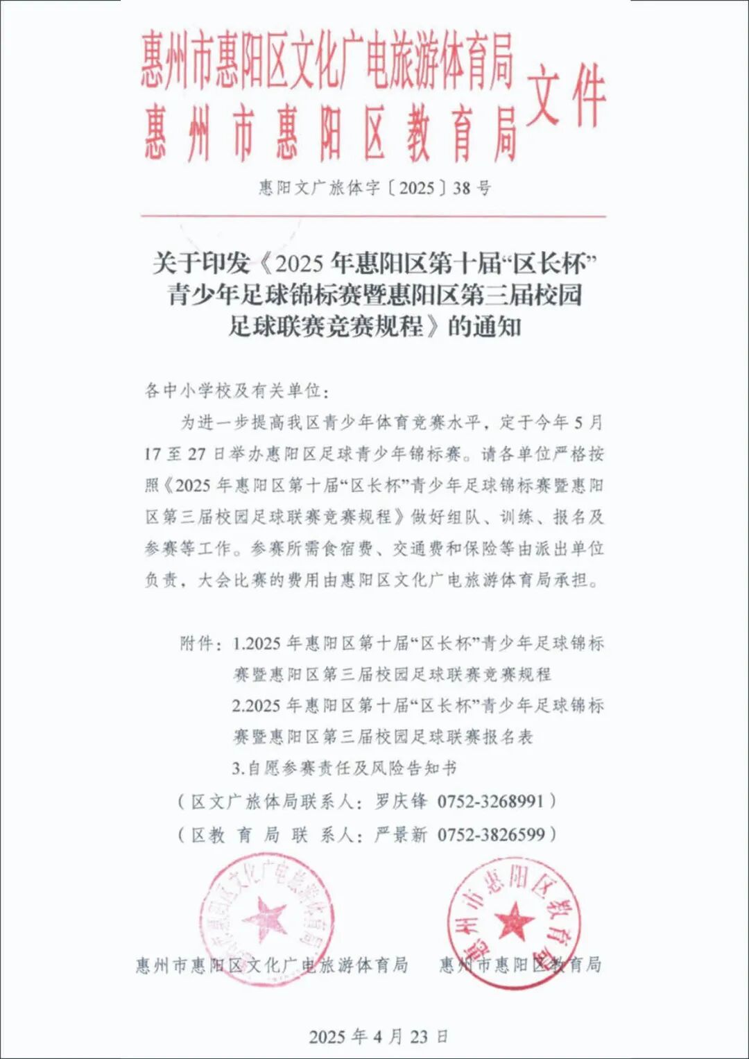 2025年惠州市惠阳区第十届“区长杯”青少年足球锦标赛暨惠阳区第三届校园足球联赛开赛