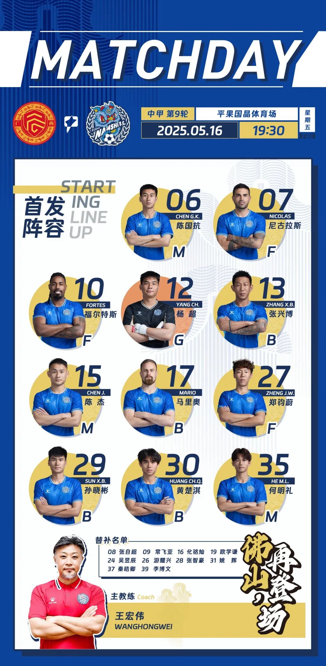 北京时间2025年5月16日19:30,中国足球甲级联赛第9轮在广西平果国晶体育场展开焦点战。凭借上半场外援前锋福尔特斯的精准破门,南狮以1-0力克广西平果,终结联赛五轮不胜,福尔特斯也获得本场比赛的最佳球员! 在赛后新闻发布会上,主教练王宏伟表示:很艰苦的一场比赛,当然也要感谢我们所有球员的团结和拼搏,在面对一些困难与挑战的时候,大家用拼搏和团结把这场比赛完美的执行下来,我相信我们的队伍经过一段时间的调整和变化,会越来越好,会回到我们队伍自己的的轨道中来! 即便跨越千里风雨,你们的战吼依然穿透了平果的夜空。当逆境如影随形,看台上那抹跃动的蓝色,是南狮永不低头的底气。每一次"佛山加油"的声浪,都在为我们的脊梁注入钢铁;每一张挂满汗与泪的脸庞,都在见证信仰最滚烫的模样。这份远征的羁绊,早已超越胜负的度量。你们用脚步丈量热爱的重量,我们用拼搏浇筑回报的誓言。请收下全体将士最深的感谢!