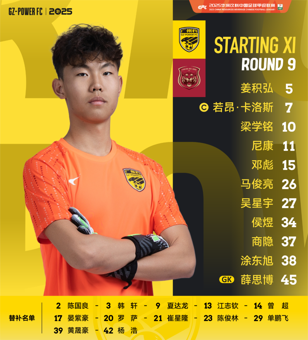 5月17日晚上,2025华润饮料中甲联赛第9轮广州豹主场迎战上海嘉定汇龙的比赛在花都体育场进行。经过90分钟的鏖战,最终广州豹凭借下半场梁学铭和若昂·卡洛斯的进球2:0力克对手。 针对五月份逐渐炎热的天气和相当密集的赛程,此役广州豹在多个位置作出轮换,2007年龄段的年轻门将薛思博迎来中甲首秀,邓彪、梁学铭进入首发阵容,涂东旭先发战旧主。双外援若昂·卡洛斯和尼康出战。 上半场比赛,上海嘉定汇龙的密集防守让广州豹略为不适应,卡洛斯和梁学铭在禁区附近的多脚射门以及尼康的定位球均偏离弹道。双方以0-0的比分回到更衣室。 【进球动图】梁学铭为广州豹打破僵局 下半场易边再战,梁学铭在比赛第53分钟为球队打破僵局——尼康右边路策划进攻精准找到卡洛斯,后者助攻跟上的梁学铭,梁学铭一脚推射帮助广州豹1-0领先!此后卡洛斯利用任意球制造险情,广州豹也先后换上罗萨、夏达龙等人保持火力。第85分钟,卡洛斯接夏达龙传球,禁区附近推射破门,打入个人赛季第7粒进球,帮助广州豹2-0锁定胜局!最终,广州豹主场2-0击败上海嘉定汇龙,收获赛季第6场胜利! 【进球动图】若昂·卡洛斯帮助球队扩大比分 此役黎兵在多个位置作出调整,U21门将薛思博先发出战,梁学铭、邓彪、涂东旭进入首发阵容,若昂·卡洛斯继续戴上队长袖标。 替补席方面,夏达龙、晏紫豪、罗萨待命