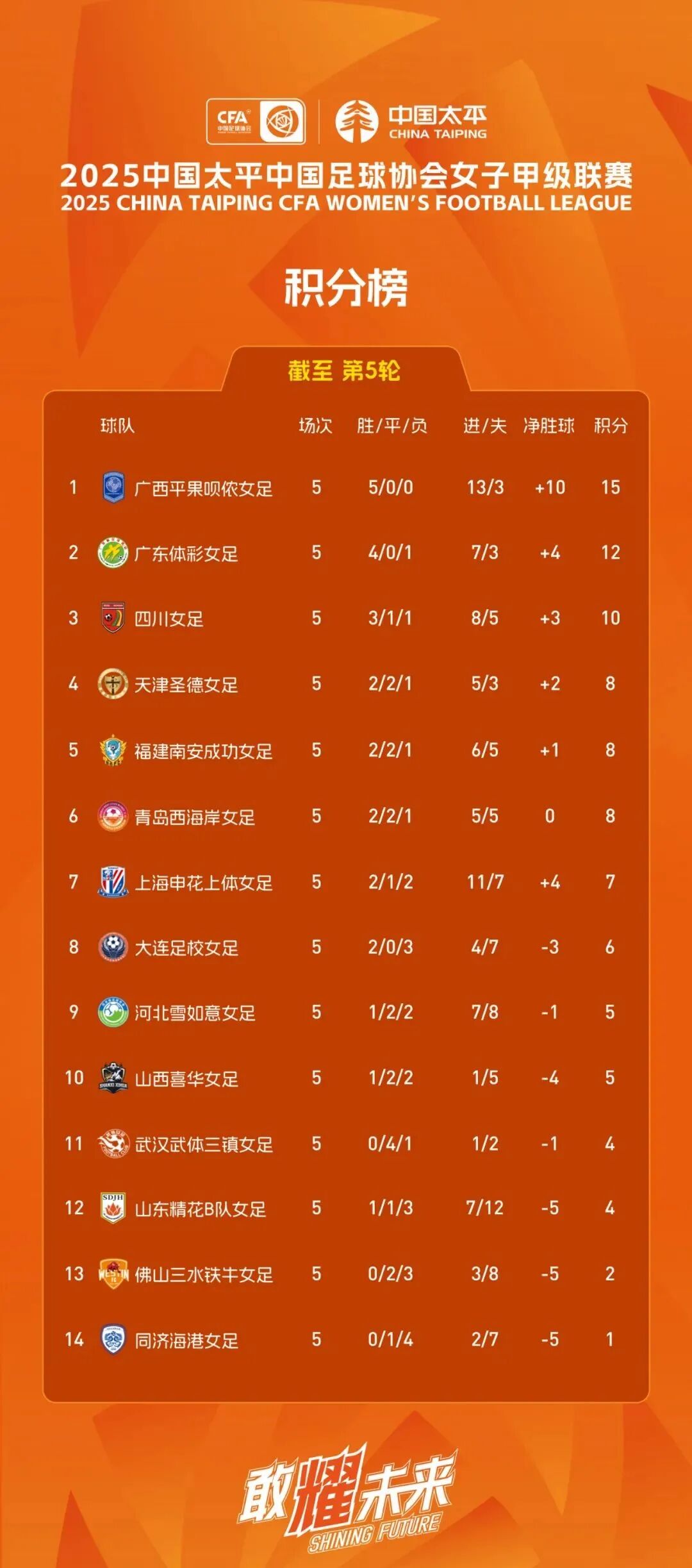 最终,广东体彩女足客场1-0击败山西喜华女足,豪取三连胜。本轮过后,她们以4胜1负的成绩暂列积分榜第二位。