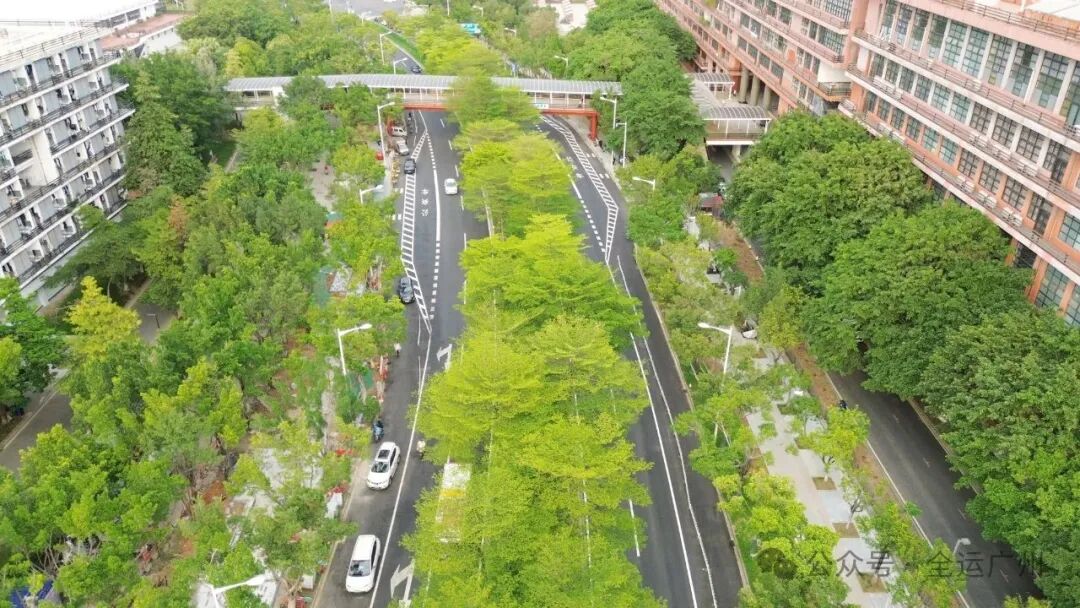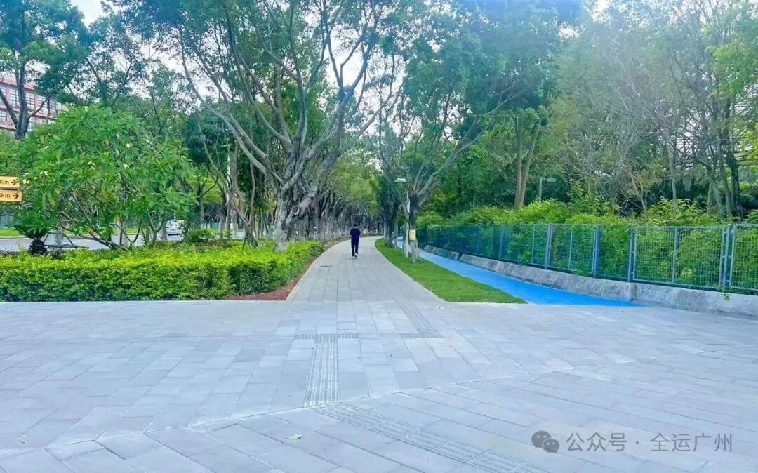 广州大学城体育中心及周边精致街区 重点突出“青年友好型街区” 通过色彩演绎,将大学城的生态、文化、创新、活力四大特质配以绿色、蓝色、红色、橙色,贯穿道路提升设计显性表达。 在绿地环境、道路慢行系统、景观节点、建筑环境中进行演绎应用,把控大学城全域的配色,新增彩色非机动车道约58千米。 打造自然和谐的山水生态体育公园,改造绿地面积约2.5万平方米。 在附属公用设施设计中融入岭南文化,并结合大学城中心湖公园及周边自然山体,打造开放共享的生态体育公园。 将学校、公园、医院出入口,路口端头等人流密集处改造为草坪,塑造特色开敞空间。 越秀山体育场及周边精致街区 延续“足”够精彩的独家记忆