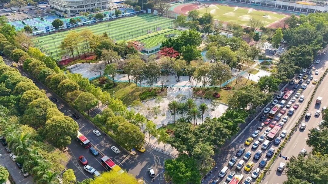一体化设计道路铺装、树池样式、电箱杆件等基础设施,保留场地内所有成冠乔木,并补植花叶良姜、亮叶朱蕉等耐阴植物,形成层次丰富的立体绿化景观。 为改善体育场周边交通环境,向市民群众提供安全舒适的慢行空间,着重提升应元路、吉祥路等主要路段的车行道及人行道品质。 在无障碍设施建设方面,根据路口条件因地制宜设置全宽式单面或三面缘石坡道,切实保障残障人士、老年人等特殊群体出行便利。