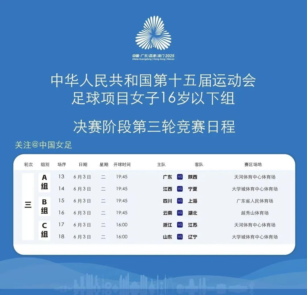 全运知道丨U16女足赛第三轮小组赛观赛今日线下预约