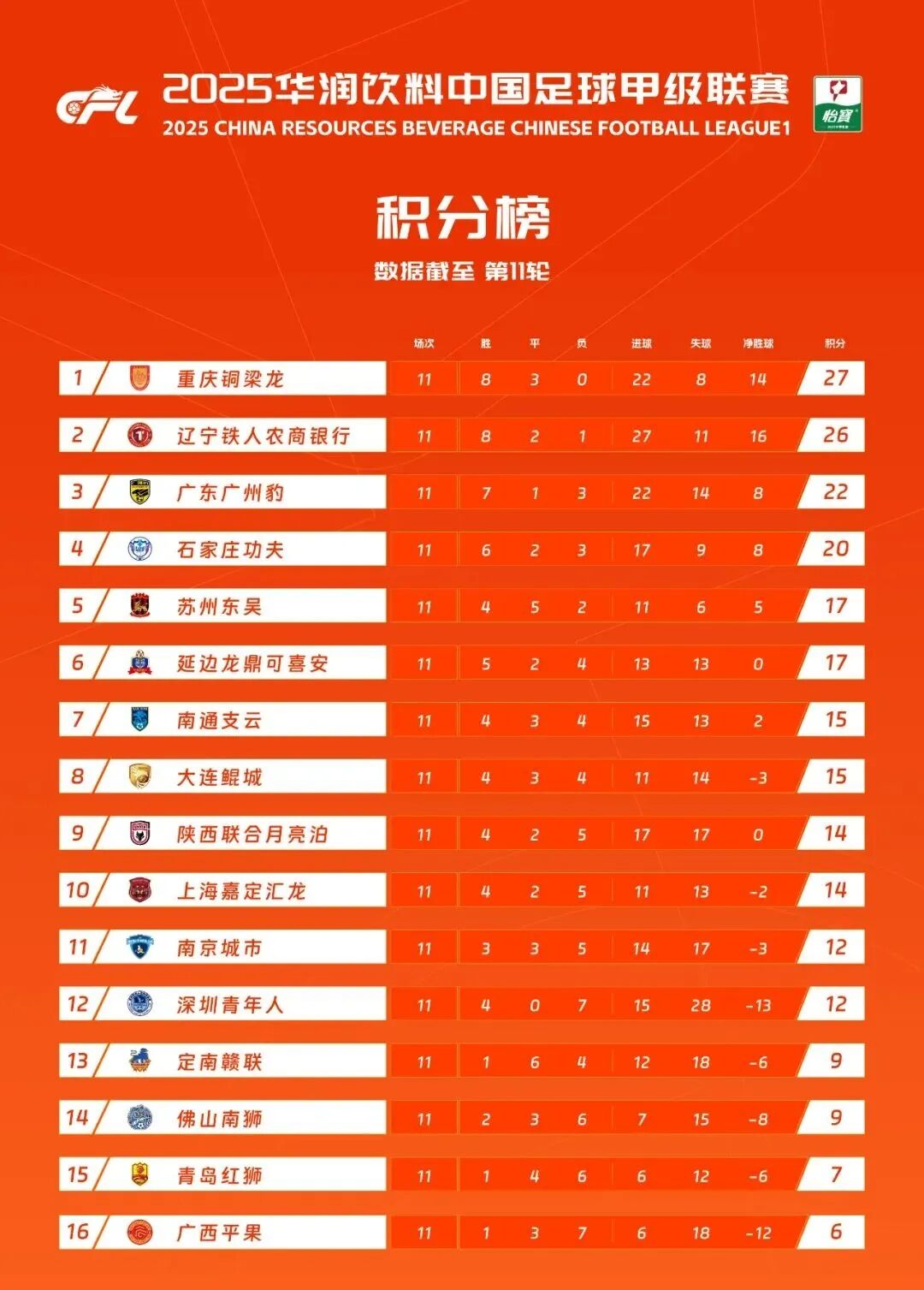 最终,南狮主场1-1战平铜梁龙。11轮过后,南狮以2胜3平6负积9分的成绩排名第十四位。