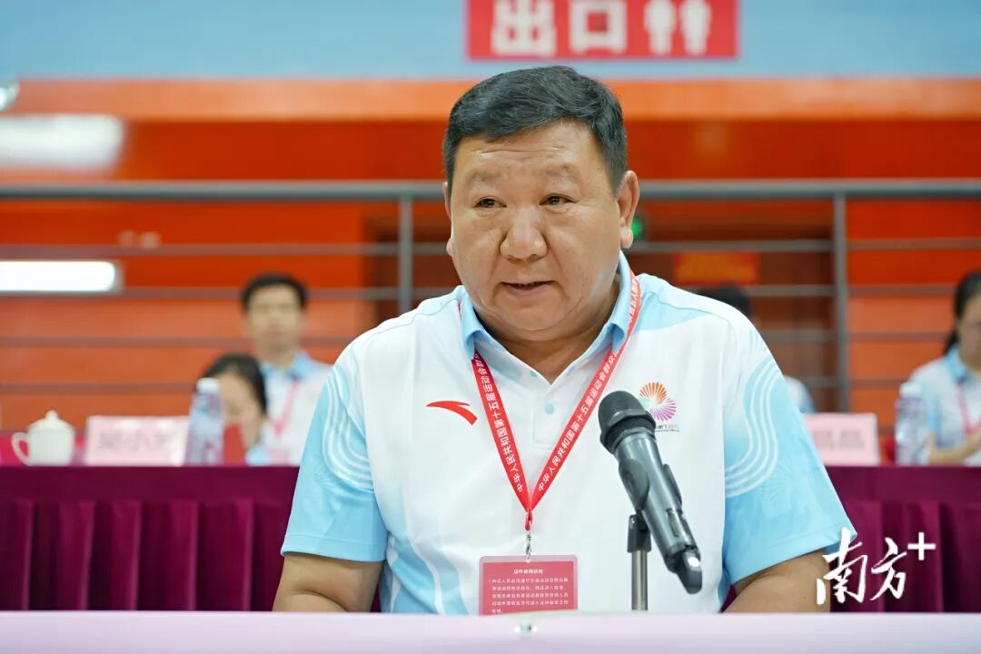 代伟在致辞时指出,十五运会是粤港澳三地承办的全国规模最大、水平最高、影响最广的综合性运动会,既是展示竞技体育成果的舞台,更是弘扬中华体育精神、凝聚奋进力量的盛会。梅州是著名的“足球之乡”,近年来高质量建设全国足球发展重点城市,大力发展群众足球,做强足球青训,做大足球人口,做活足球产业,擦亮足球品牌。梅州承办本届全运会部分赛事,深入践行“绿色、共享、开放、廉洁”的办赛理念,围绕“办好一场赛,提升一座城”的目标,高标准推进场馆建设、赛事组织、服务保障等工作,全力为运动员创造公平竞技的舞台,为观众呈现精彩纷呈的赛事,向全国展现梅州的客家风韵与时代活力。