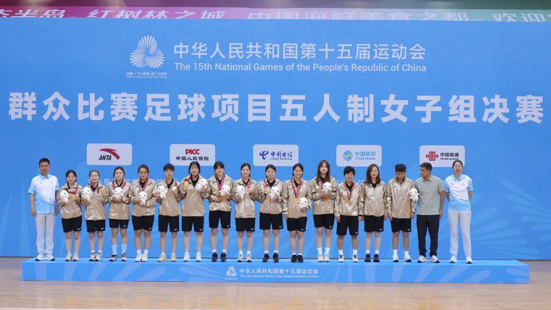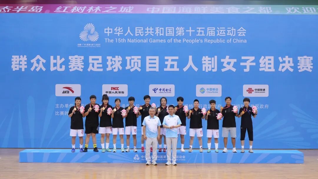6月17日,湛江奥体中心内气氛热烈,第十五届全国运动会群众比赛足球项目五人制女子组决赛闭幕式暨颁奖仪式在此隆重举行。中国足协社会足球部、广东省足球协会、湛江市有关领导嘉宾齐聚一堂,与现场观众共同见证这场群众足球盛会的荣耀时刻。