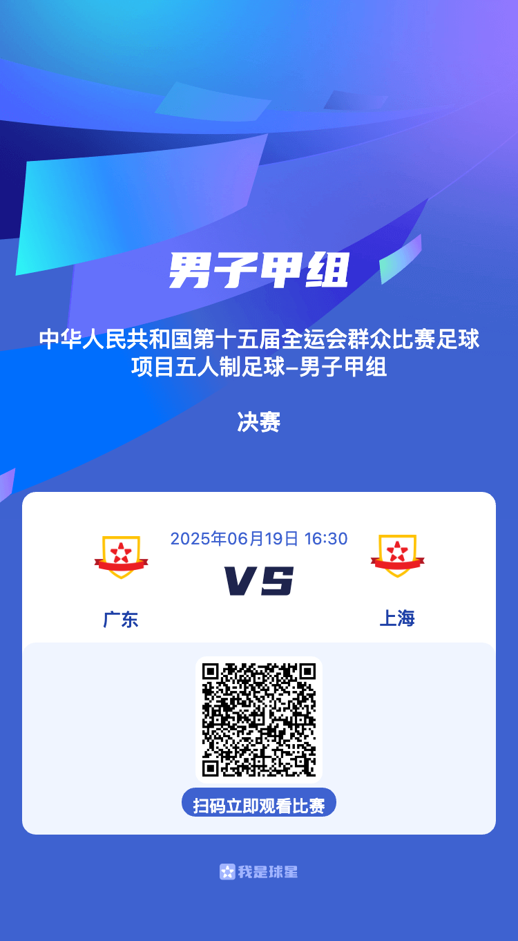 6月18日,十五运会群众比赛足球项目五人制男子甲组半决赛结束,广东队5-3击败香港队,和上海队会师决赛。