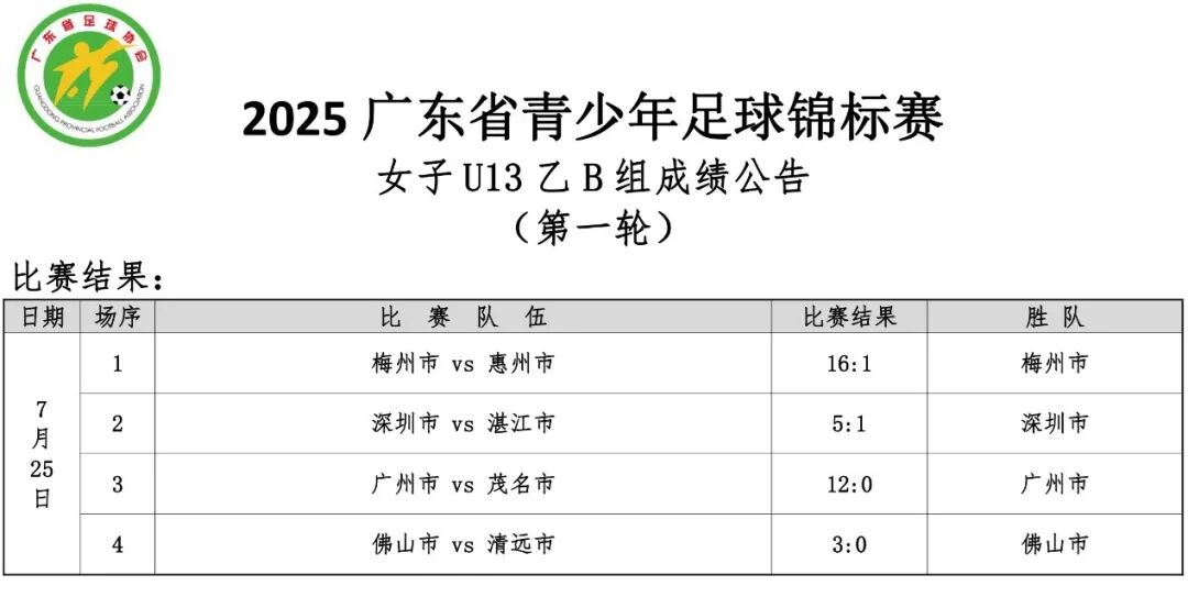 2025年广东省青少年足球锦标赛由广东省体育局主办,广东省足球运动中心、广东省足球协会承办,女子U14乙A组、U13乙B组的比赛由珠海市足球协会、珠海索卡体育文旅运营有限公司协办,在珠海索卡体育训练基地举行。