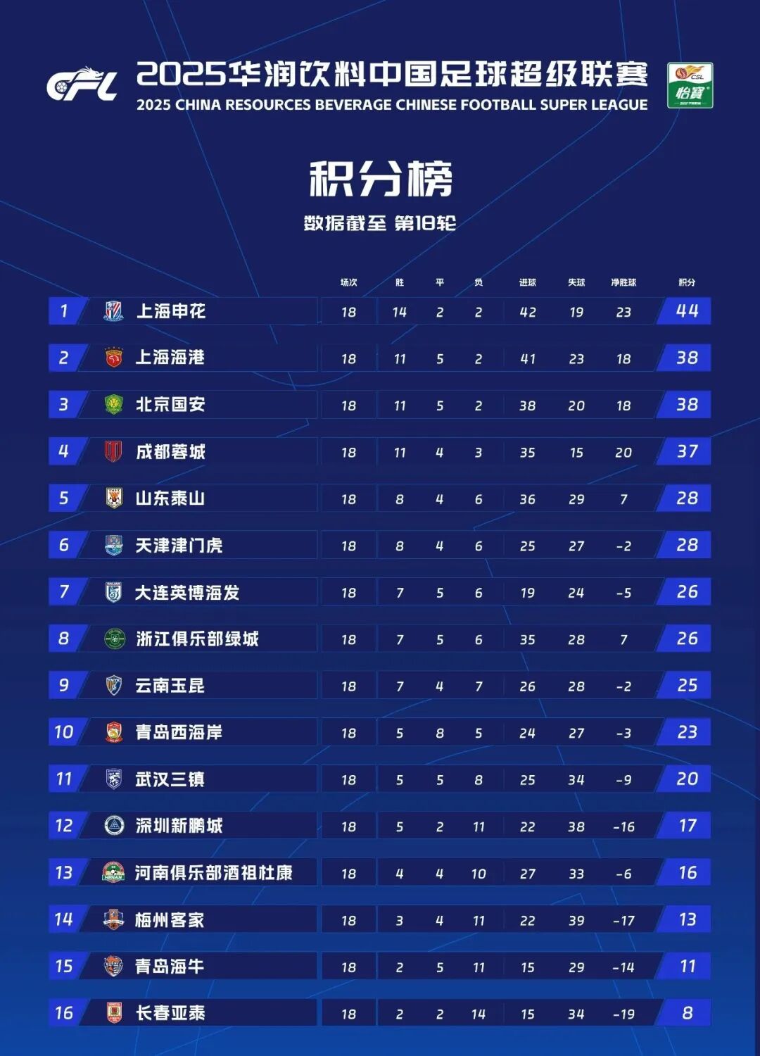 最终,梅州客家客场0-3不敌山东泰山。中超18轮过后,他们3胜4平11负积13分排在第十三位。