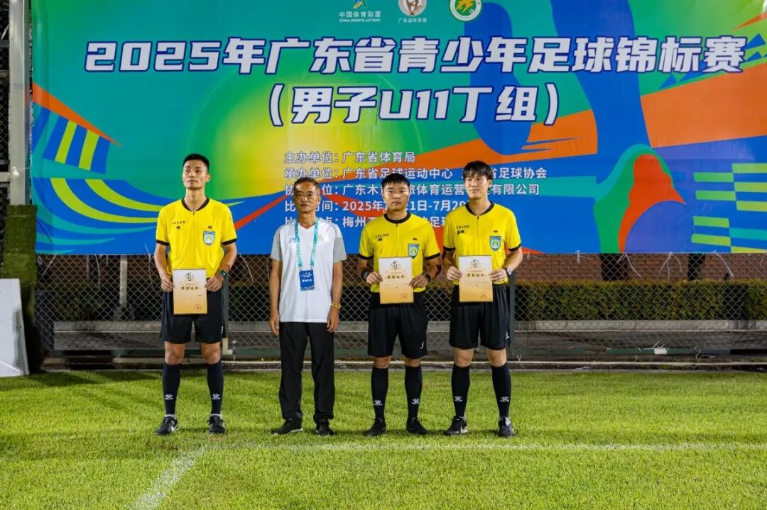 颁奖仪式上,本次比赛裁判长孙铁宁宣布2025年广东省青少年足球锦标赛男子(U11丁组)最终成绩,比赛监督李庆先生宣布获奖名单。