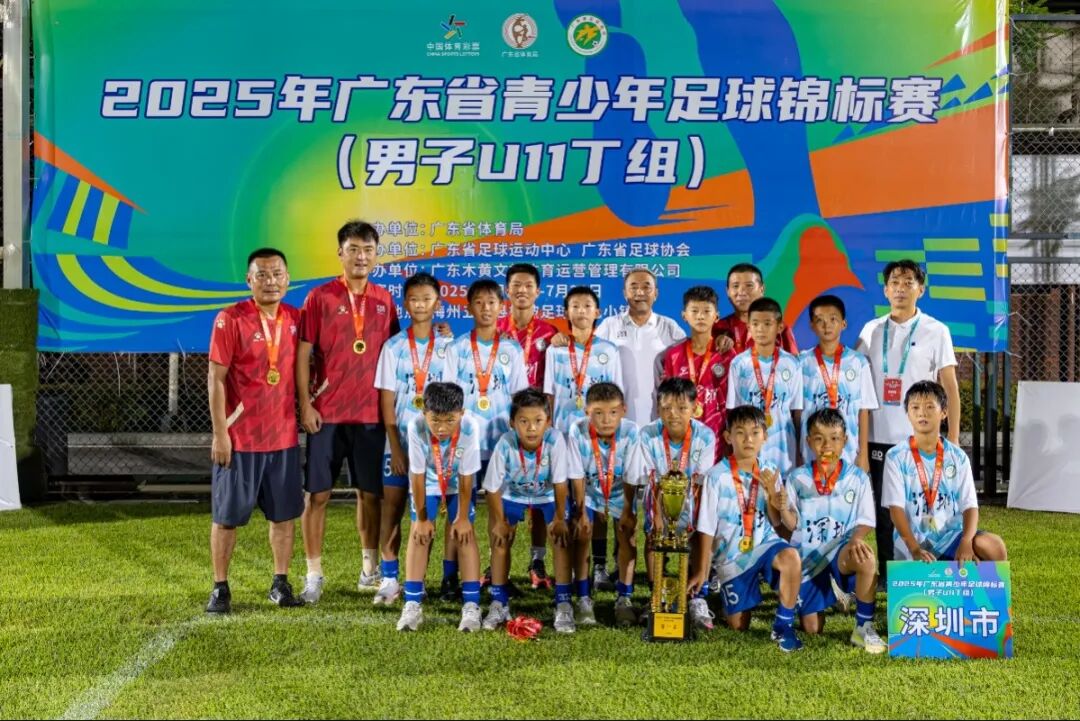 7月28日,为期8天的2025年广东省青少年足球锦标赛男子(U11丁组)比赛在五华横陂足球特色小镇圆满收官并举行颁奖仪式!深圳市代表队一路过关斩将,获得本次比赛冠军。
