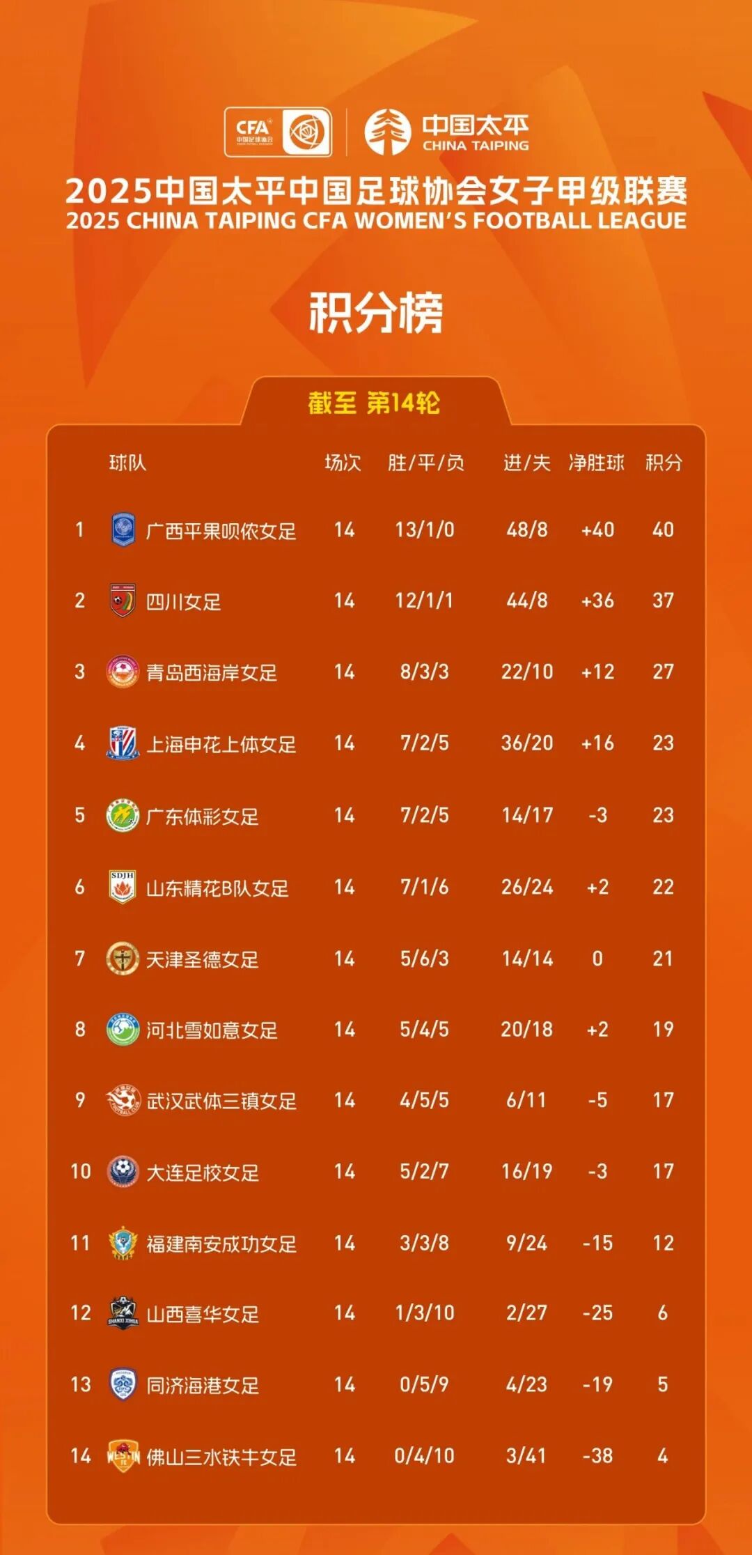 最终,广东体彩女足0-1不敌大连足校女足。女甲14轮过后,她们7胜2平5负积23分排在第五位。