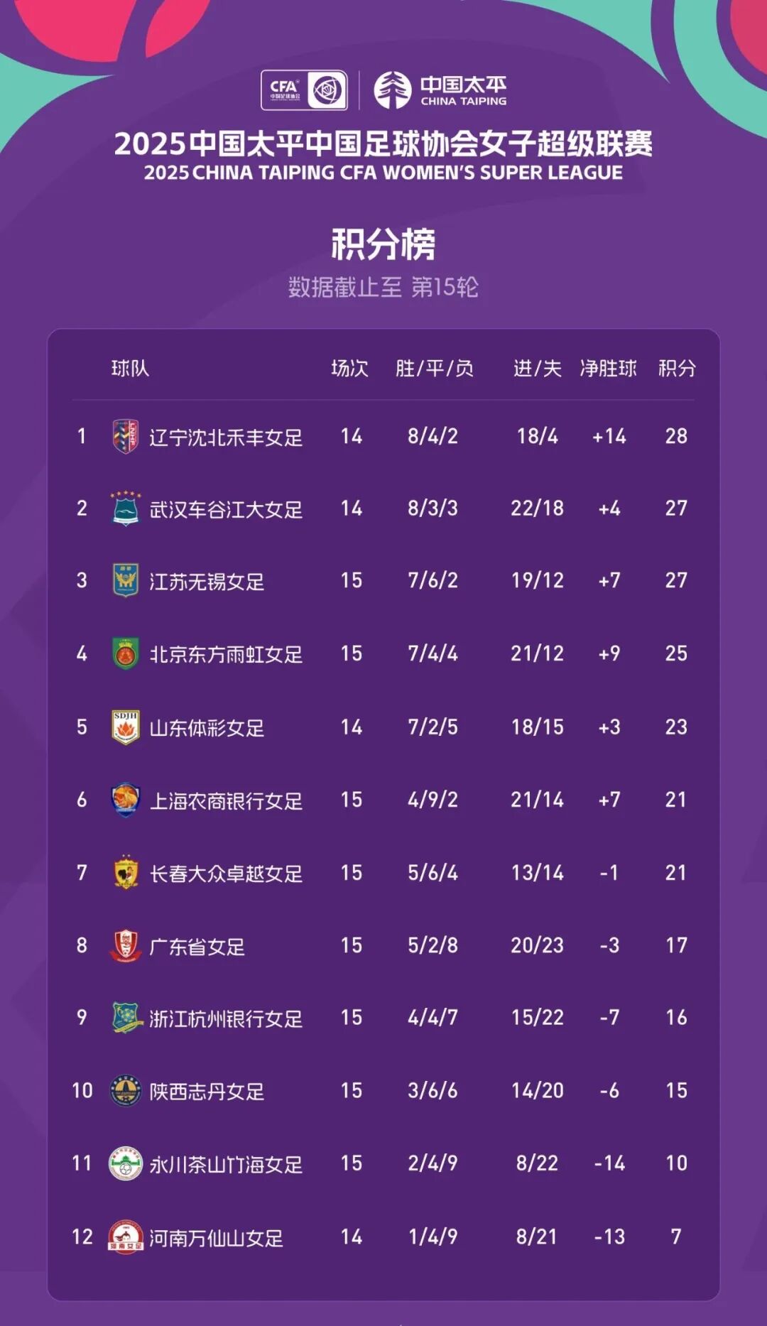 最终,广东省女足客场0-1不敌长春女足。女超15轮过后,她们5胜2平8负积17分排在第八位。