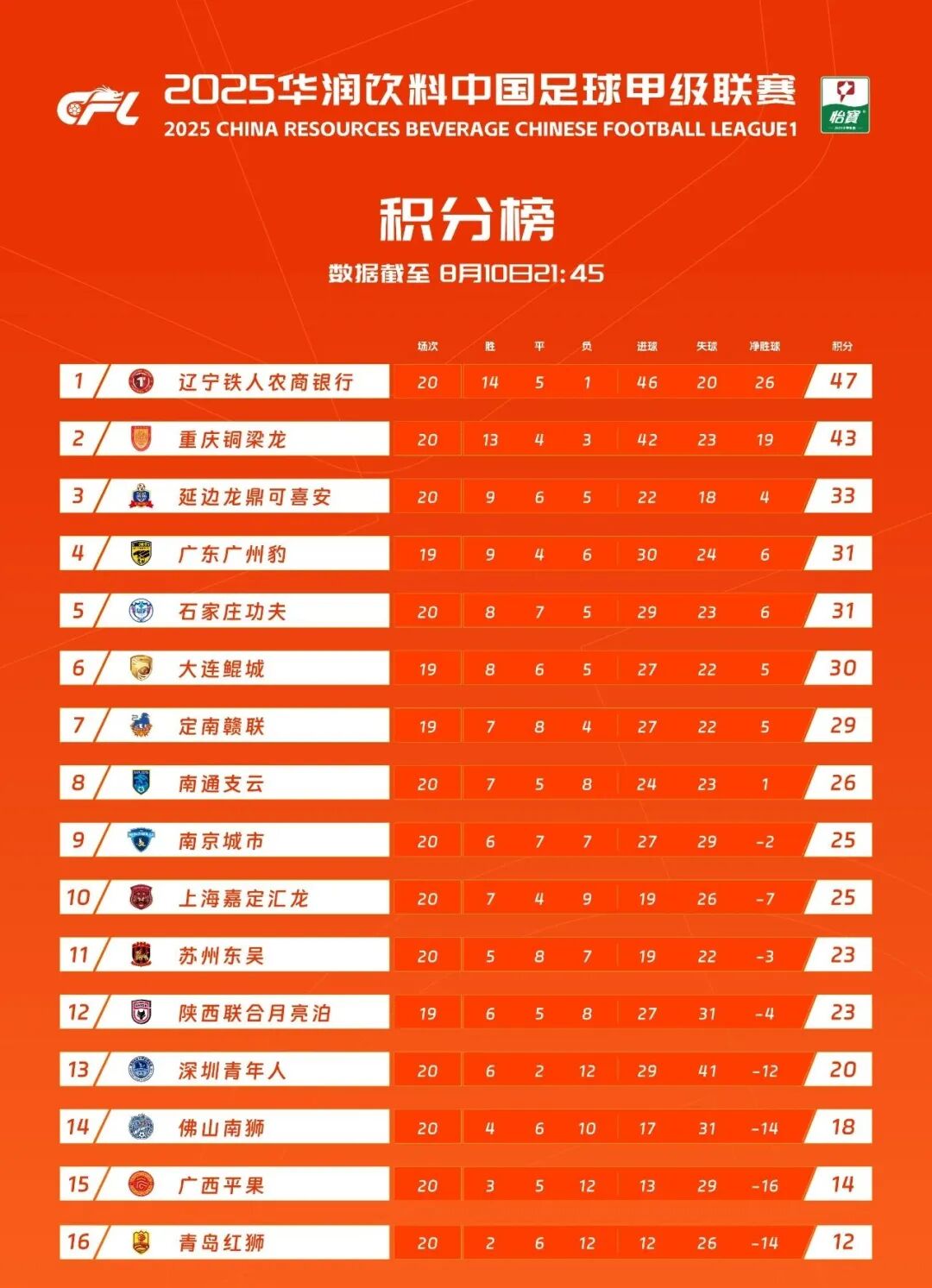 最终,佛山南狮客场0-3不敌定南赣联。中甲20轮过后,他们4胜6平10负积18分排在第十四位。