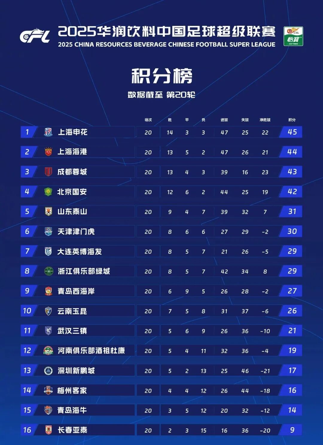 最终,深圳新鹏城客场1-4不敌河南。中超20轮过后,他们5胜2平13负积17分排在第十三位。