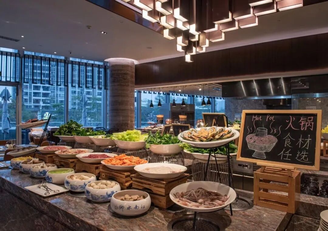 自助晚餐:新鲜海鲜、诱人刺身、热菜佳肴、精致西点...品类丰富到选择困难,吃饱喝足再回房休息,疲惫全消;