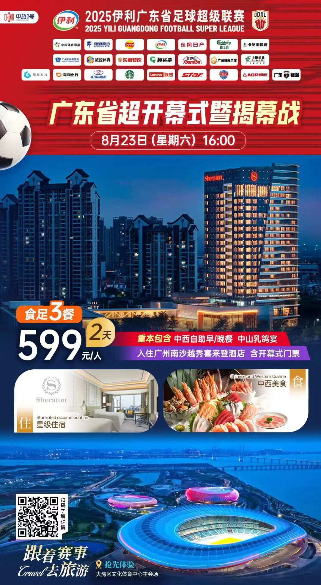 ¥599省超尊享!住喜来登、吃海鲜自助+乳鸽宴,8.23开幕式球迷速约!