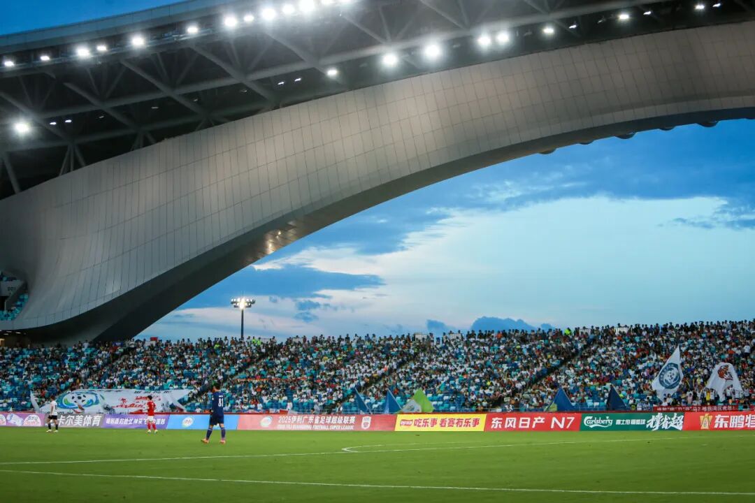 说起凭海临风,大湾区文体中心无疑和大连梭鱼湾球场一样,令人心驰神往。梭鱼湾球场2023年正式投入使用,当时尚在中甲的大连英博进驻梭鱼湾时,曾经历过当地深入的研讨。但事实证明,一座好的球场必会聚集无尽的活力,英博一路从中甲升入中超,梭鱼湾也从中甲上座王成为中超的上座王。
