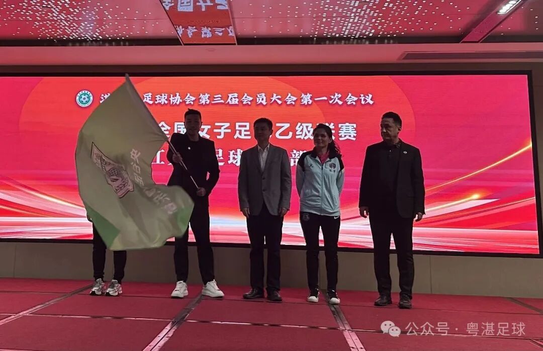 今年初,湛江市副市长吴国雄同志为粤湛女足授旗。