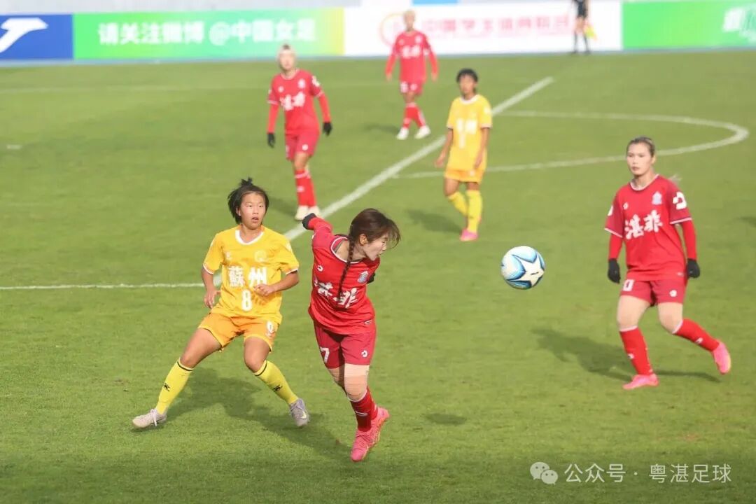 苏州市太湖足球运动中心女足此前在排位赛小组赛中3战全胜进10球失1球,与粤湛女足一样全胜晋级。八分之一决赛,她们以7-1的悬殊比分战胜对手。而粤湛女足在上一场与海南无限海岸苦战晋级,体能方面处于一定的劣势。