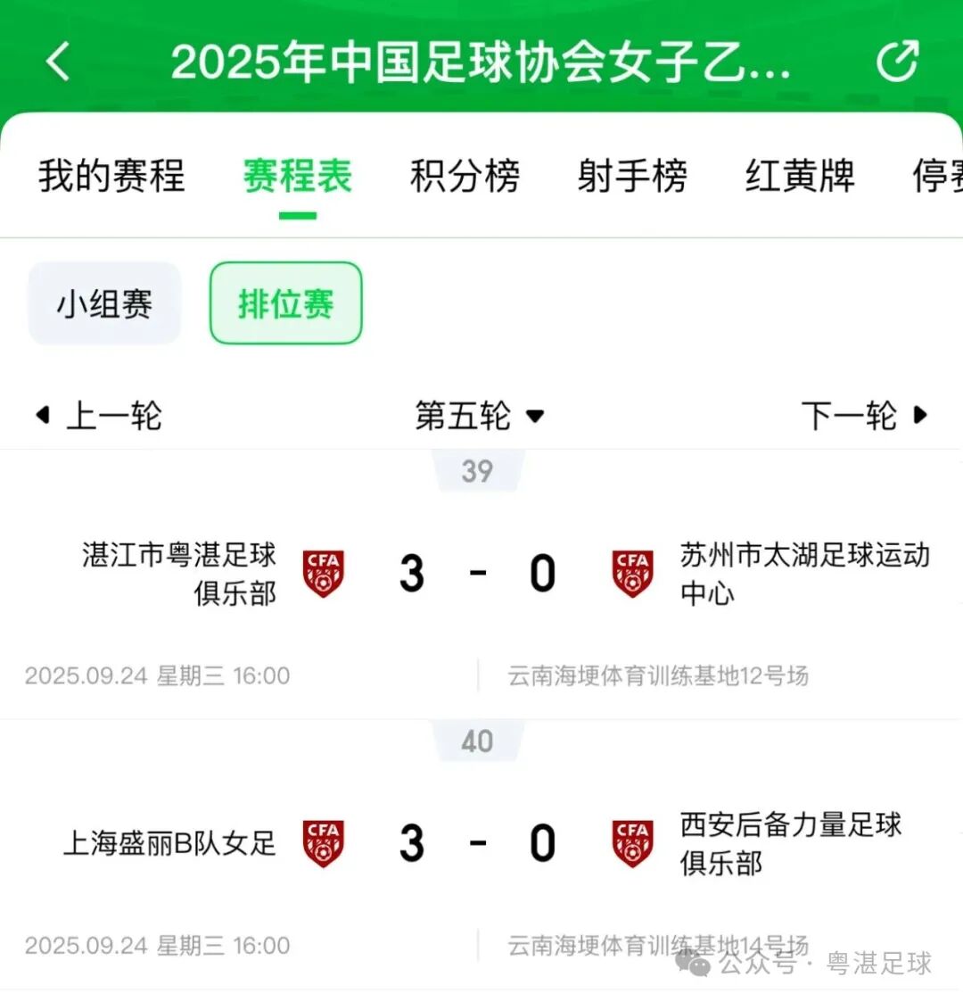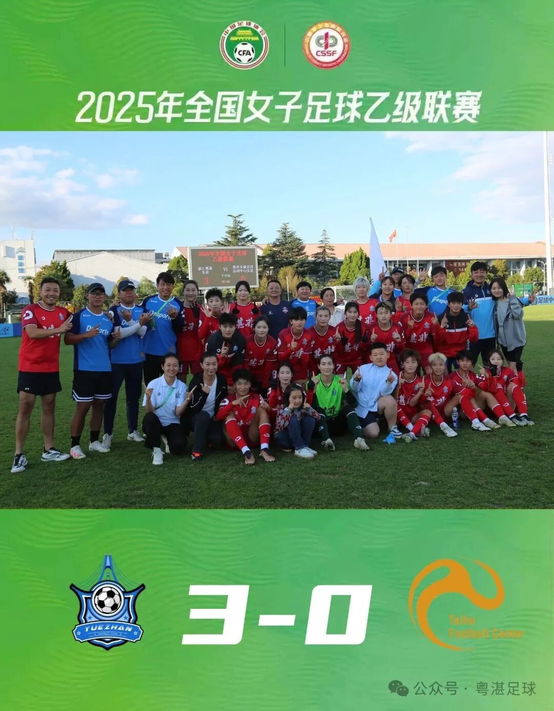 9月24日下午,2025年全国女子足球乙级联赛排位赛进行了半决赛的争夺,湛江粤湛女足凭借谈佳榕、黄巧祥和周骊菁的进球,以3-0战胜苏州市太湖足球运动中心女足,昂首晋级决赛,创造了湛江职业足球的历史。