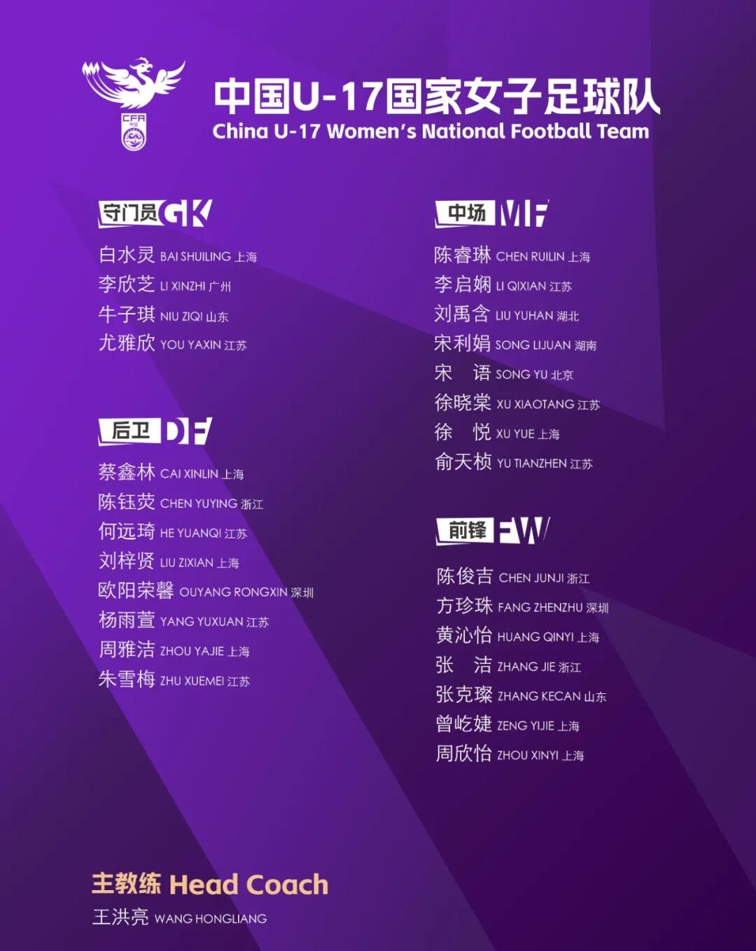同日,中国足协发布了U17女足国少2025年第六期集训通知,广州的李欣芝和深圳的欧阳荣馨、方珍珠入选。