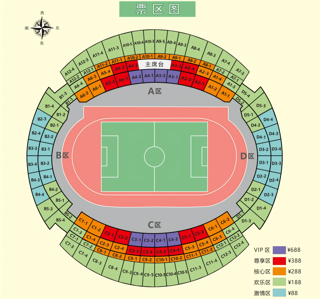 座位分区:场馆内座位实行严格的分区限制,请按照球票内规定的区域就座观赛,严禁跨区域就座。