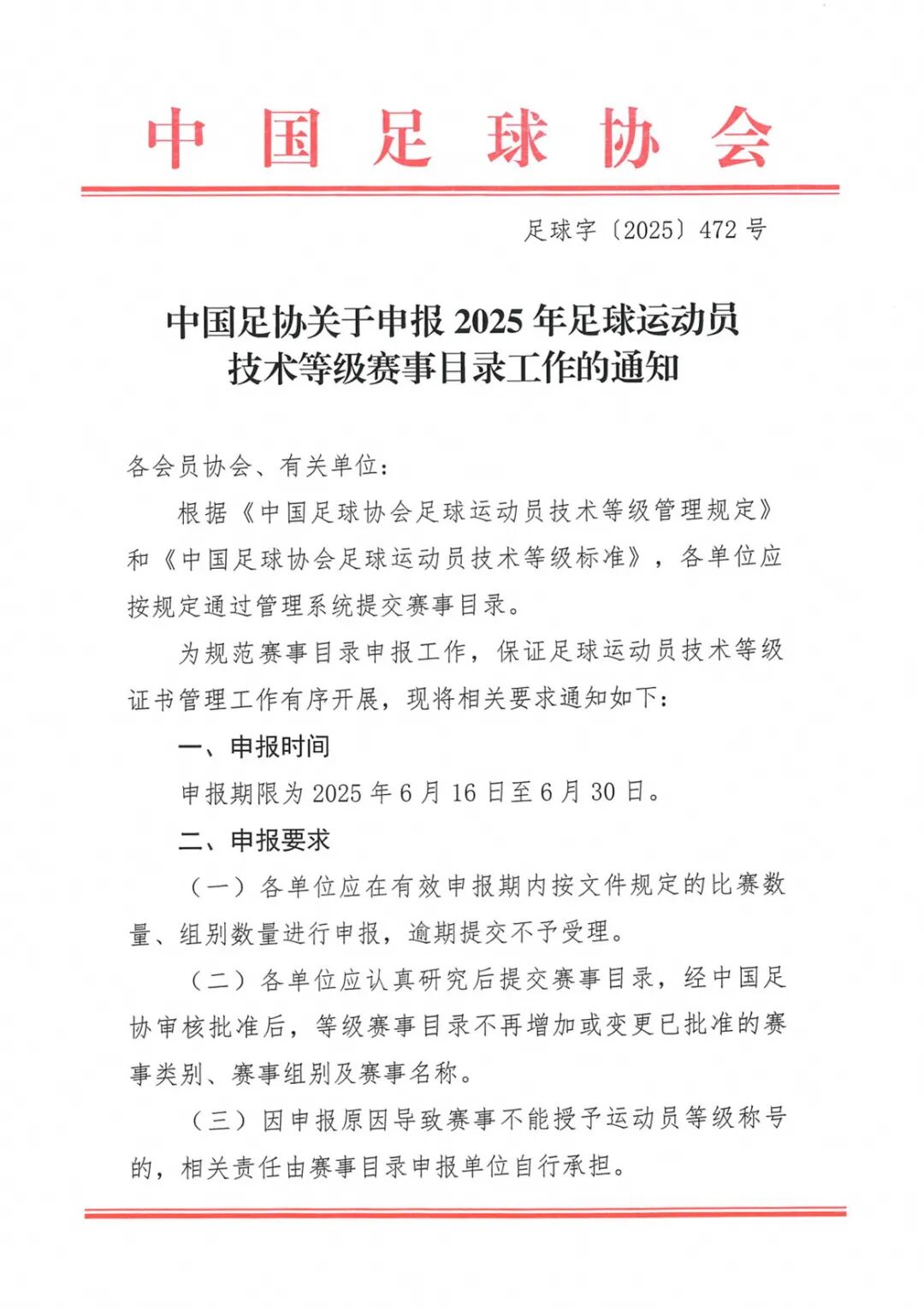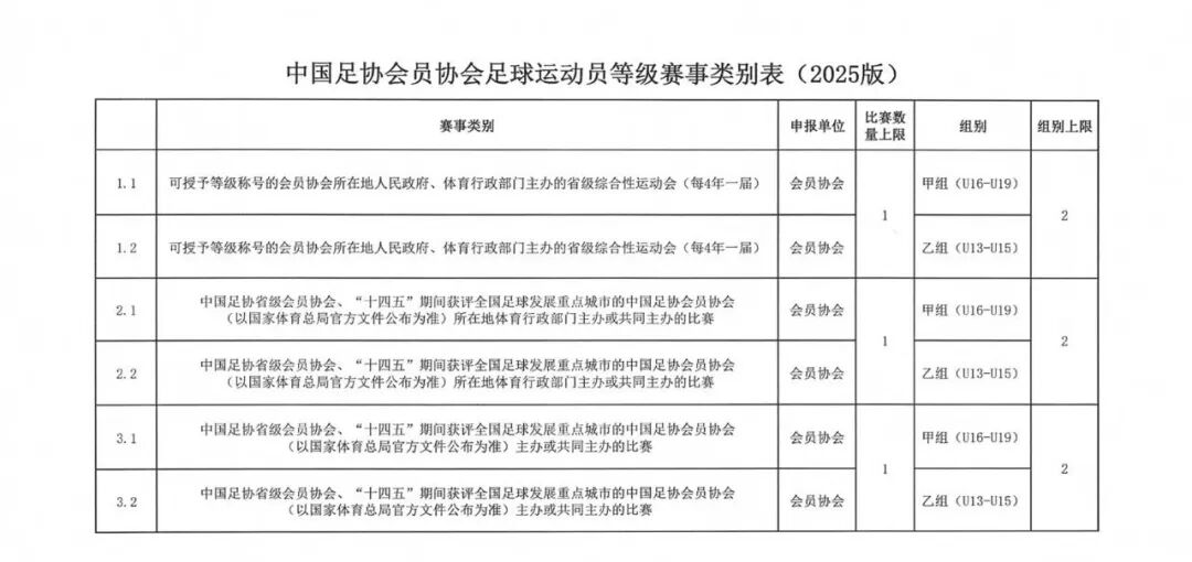 关于公示2025年度第七批足球运动员技术等级申报名单的通知