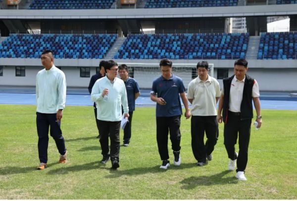 省足协专家组对江门体育中心体育场粤超场地进行实地检查